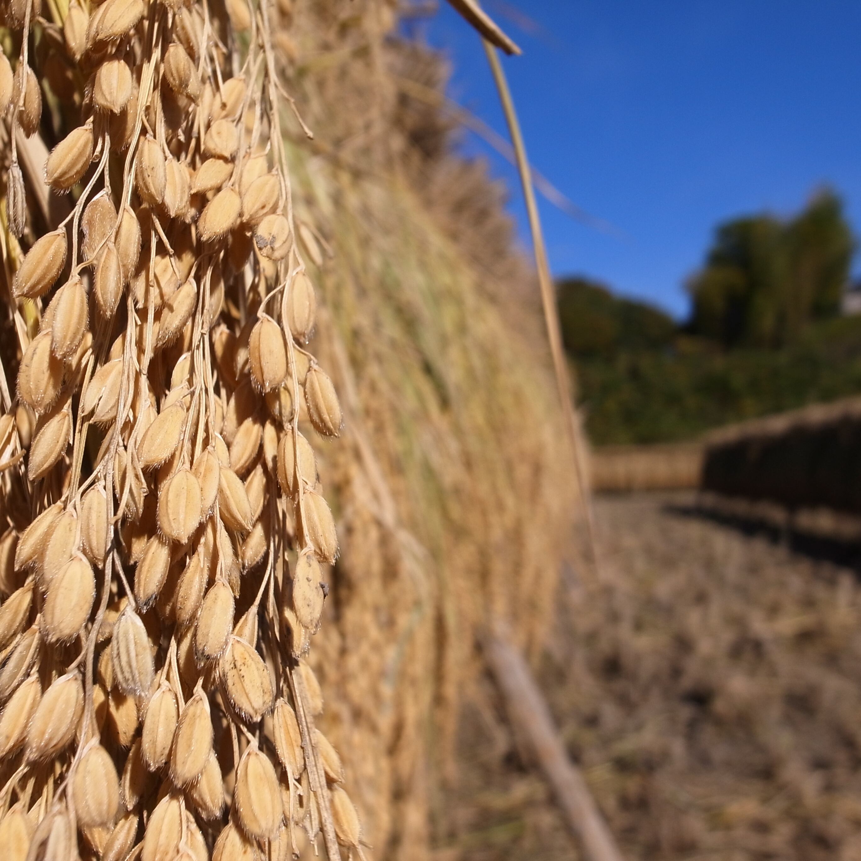 天日干しで乾燥させた「自然栽培」のもち米、滋賀羽二重(しがはぶたえ)もち米と