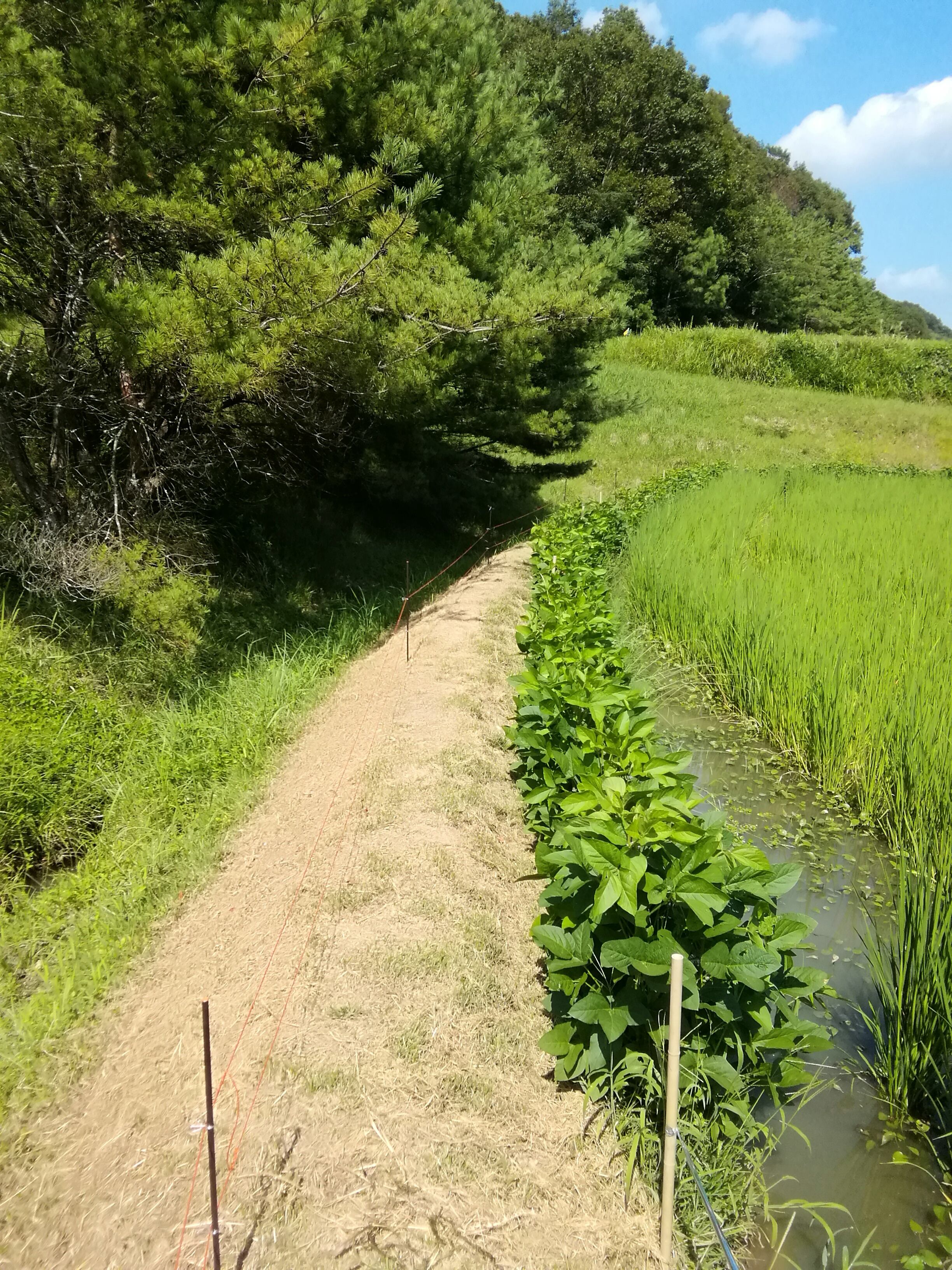 同じ田んぼのあぜですくすく育った黒千石大豆(くろせんごくだいず)を